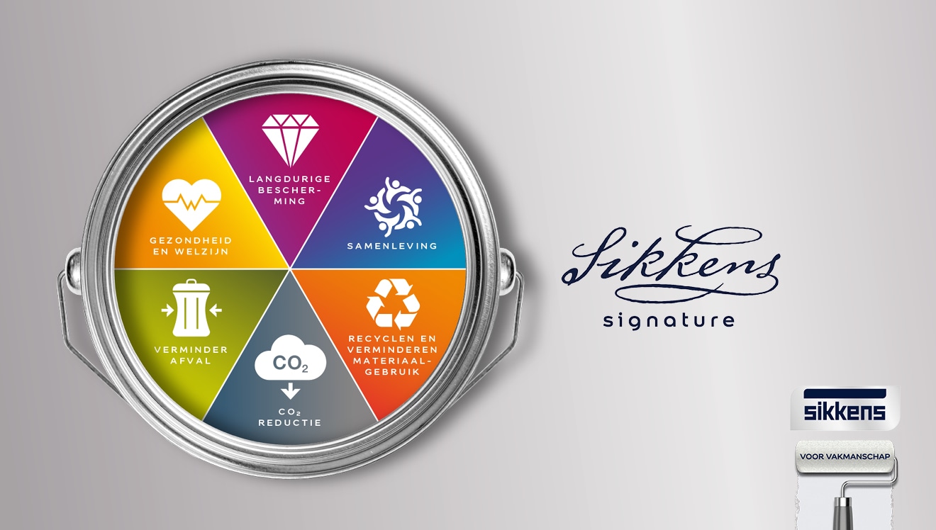 De zes duurzaamheidsthema’s van Sikkens onderschrijven deze duurzaamheidsaanpak; alle elementen die een bijdrage leveren aan een betere leefomgeving komen aan bod. Ieder verfblik van Sikkens of samenwerking met Sikkens draagt er aan bij, met producten die langdurig meegaan en de gezondheid en het welzijn van werknemers, schilders en eindgebruikers voorop stellen.
