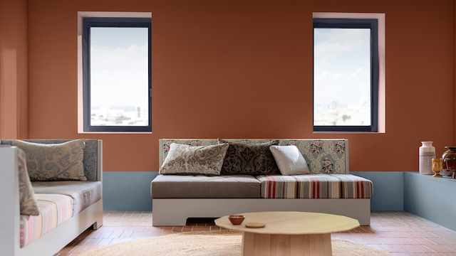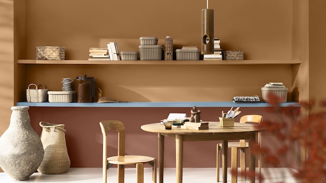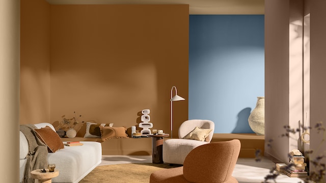 De collectie blauwtinten van Sikkens spelen de hoofdrol, waarvan het luchtige hemelsblauwe Mellow Flow™ in dit creatieve kleurenpalet het middelpunt vormt, wordt aangevuld met warme, trendy aardetinten van terracotta, baksteen en klei.